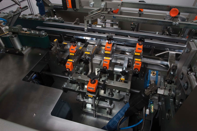Sonderverschlussvarianten, Verschlüsse mit Verriegelung, Faltschachteln mit Hängelaschen und / oder Kombinationsverschlüsse können integriert werden ohne den schnellen werkzeugarmen Formatwechsel zu beeinträchtigen.