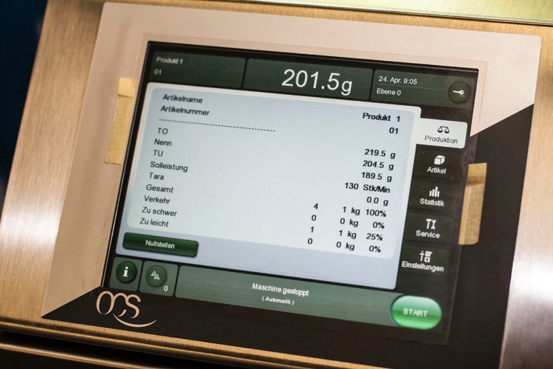 Durch die hohe Wiegegenauigkeit der implementierten Waagen wird der Produktionsprozess wirksam optimiert. Für die hergestellten Produkte werden mittels Kontrollwaagen entsprechende Qualitätsrichtlinien überprüft, gesetzliche Bestimmungen eingehalten und somit ein höherer Qualitätsstandard gewährleistet.